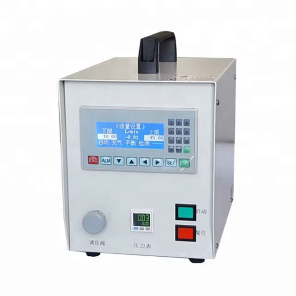 The flow detector inputs compressed air with precise pressure control into the test product. The current test product flow value is detected by a high-sensitivity gas flow sensor, and then the upper and lower limits are compared to determine whether the test results are qualified. It is mainly used for air conditioning capillary pipes, water heater valve accessories, automobile exhaust pipes, solenoid valves, air filters and other products with restrictions on gas pressure and flow.
