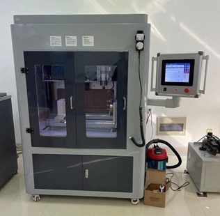 This machine is composed of three coordination axes (X, Y, Z) and a rotation axis. The three coordination axes are responsible for milling cutter positioning, and the rotation axis is responsible for rotating the material, to realize automatic sampling in each direction of the pipe and to prepare multiple specimens of different shapes on the material at one time.