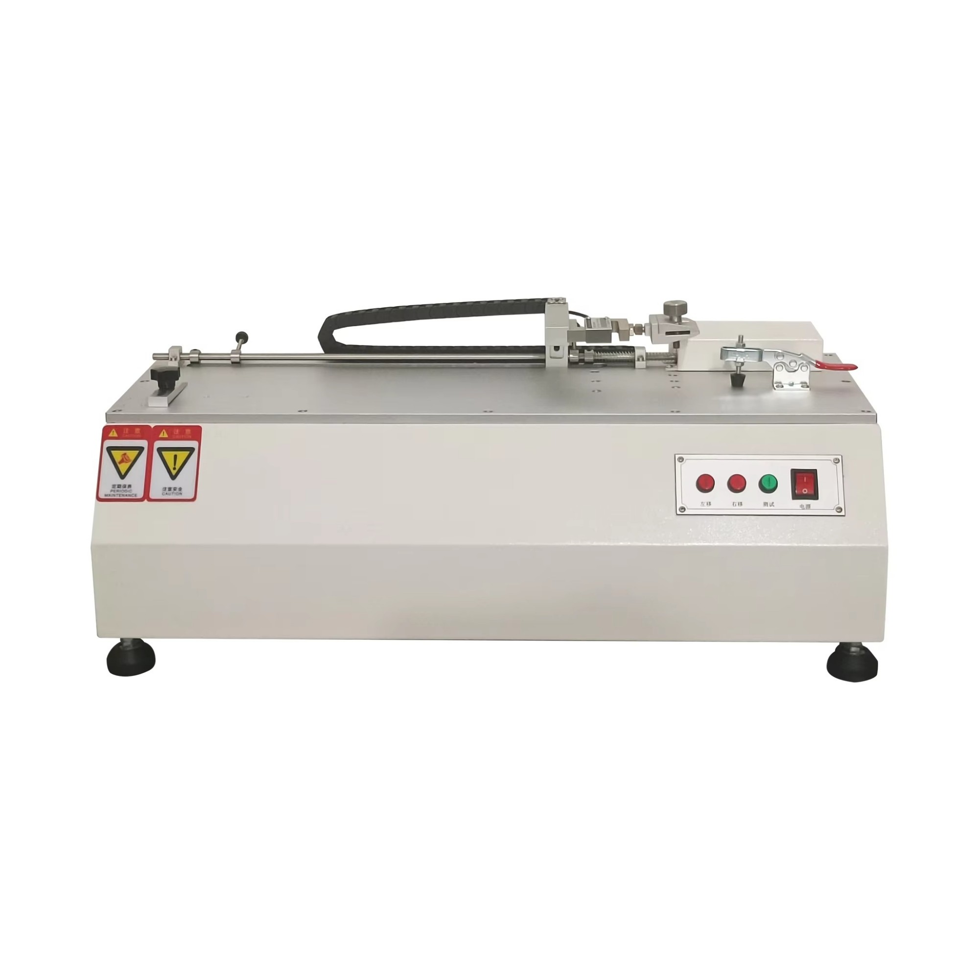 This horizontal tensile tester is suitable for rubber and plastic, paper products, color printing and packaging, tape, bags and handbags, textile, pharmaceutical, daily chemical, food, wire and electronics and other industries. It can test the physical properties of various materials, finished and semi-finished products, and select different fixtures for stretching, compression, stretching, compression, bending, tearing, peeling, adhesion, shear and other tests.