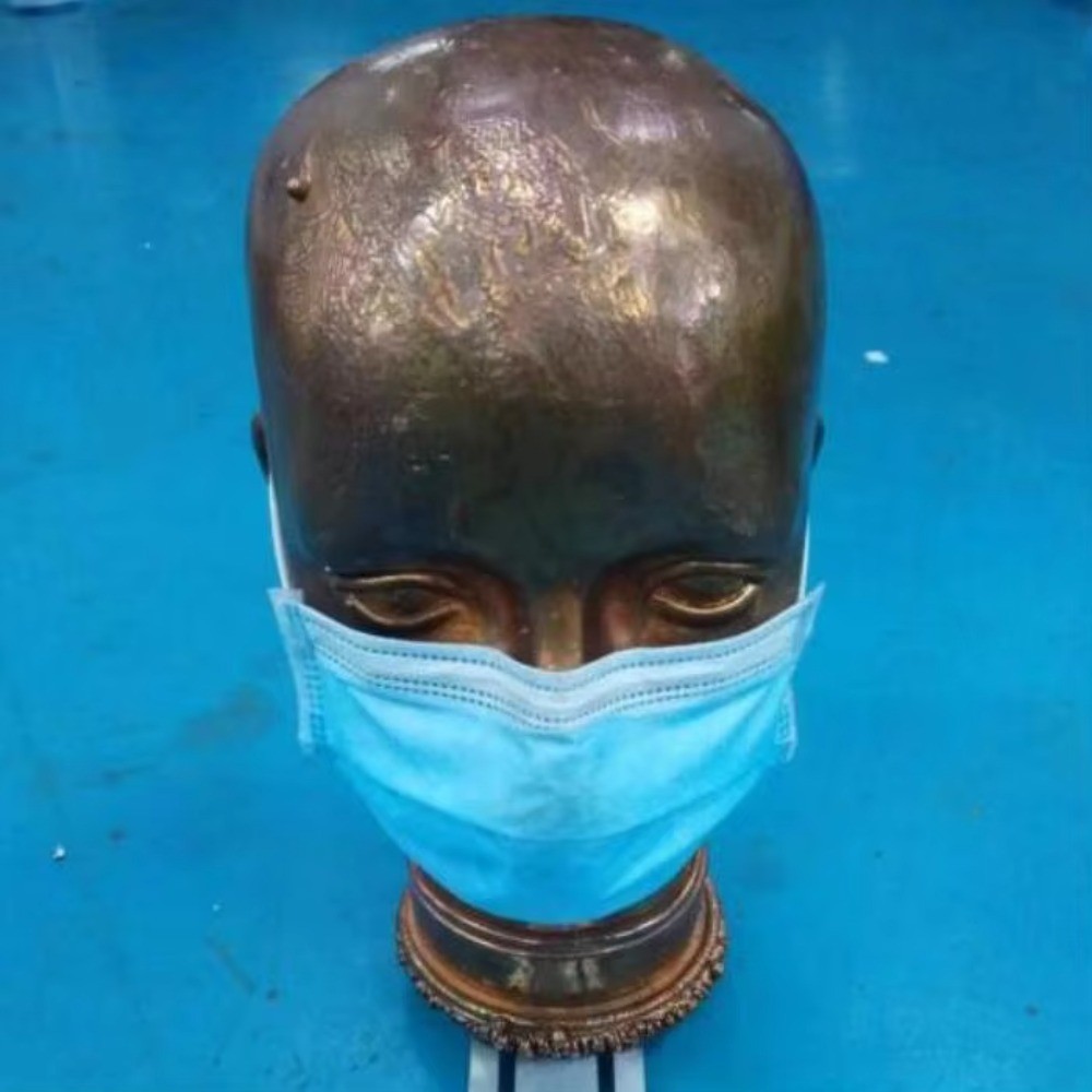 * The mask fixture is a metal head model, which