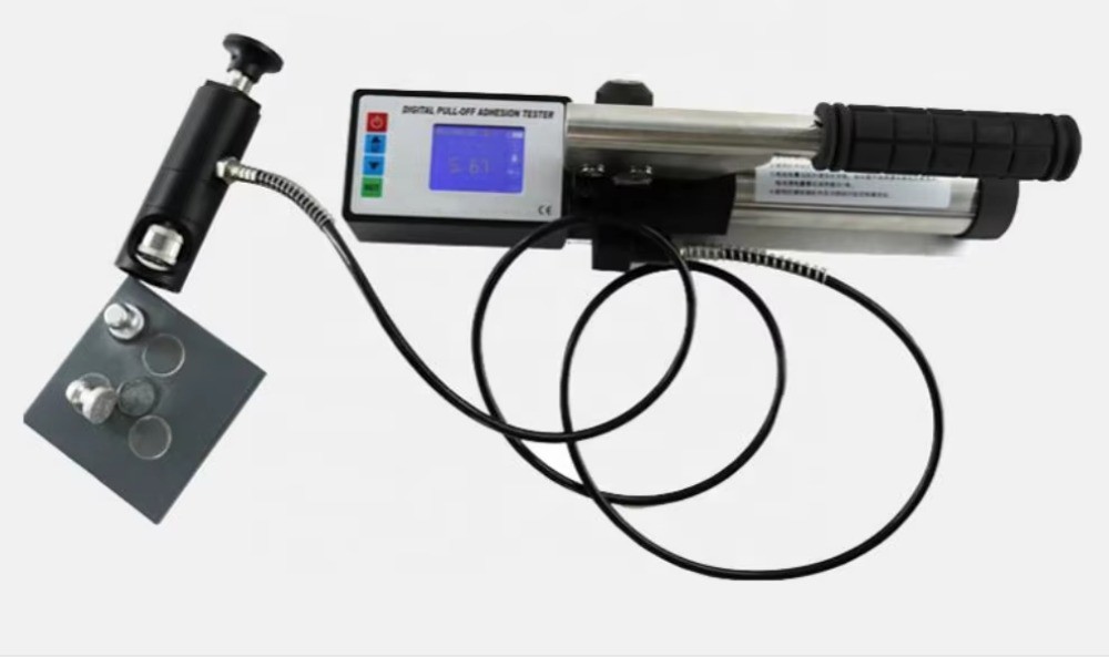 The digital adhesion tester is a portable, manual instrument used to measure the force required to pull a coating of a specified test diameter away from its substrate using hydraulic pressure. The pressure is displayed on a digital LCD and indicates the adhesion of the coating to the substrate