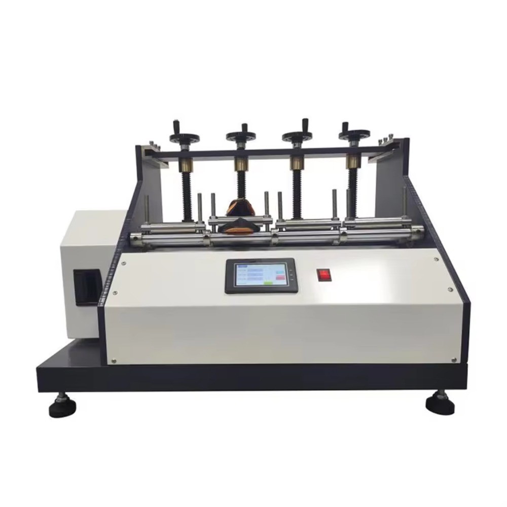 The finished shoe bending test machine is used for the bending test of finished shoes. Shoes and soles are twisted to a certain angle for a certain period of time, observing the damage to the shoes and soles, or checking the location and extent of cracks to improve quality. The machine can set the test time and stop working at the set value.